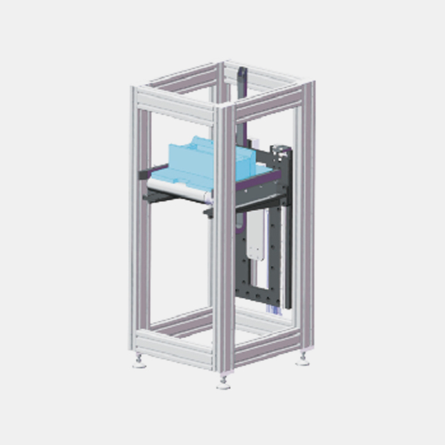 提升機應用于企業高層廠房,實現貨物換層。相較于傳統貨梯,效率高、自動化程度高,受認為因素影響小。可以對接其他自動化物流設備,如AGV、穿梭車、各類輸送線等,是智能工廠不可或缺的設備。設備根據應用場景不同,可設計為焊接框架、拼裝框架(井道環境)。采用頂部減速電機驅動鏈輪,4根轎廂鏈條,2根配重鏈條,將轎廂提升至指定高度平穩停靠。安全方面做到防沖撞、防斷鏈、防過載,每層配置快速安全門,防止人員誤入。運行平穩、速度高、精度高、噪音低